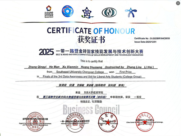 经济管理学院师生在2025“一带一路”暨金砖国家技能大赛中斩获佳绩