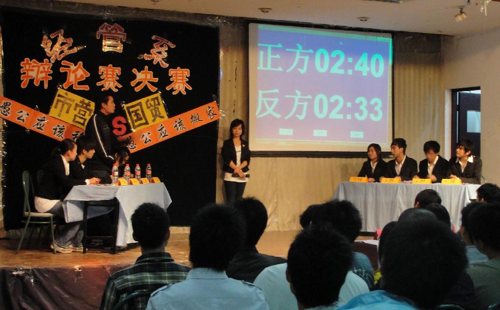 2009年10月20日下午6:00,由经管系学生会学习实践部举办的09年经管系辩论赛决赛在大学生活动中心隆重举行。出席本次辩论赛的嘉宾有经管系党总支副书记黄苏宁、学办副主任李清源、分团委书记羊栋以及相关专业辅导员岂俊荣、母雪梅、张丽。
