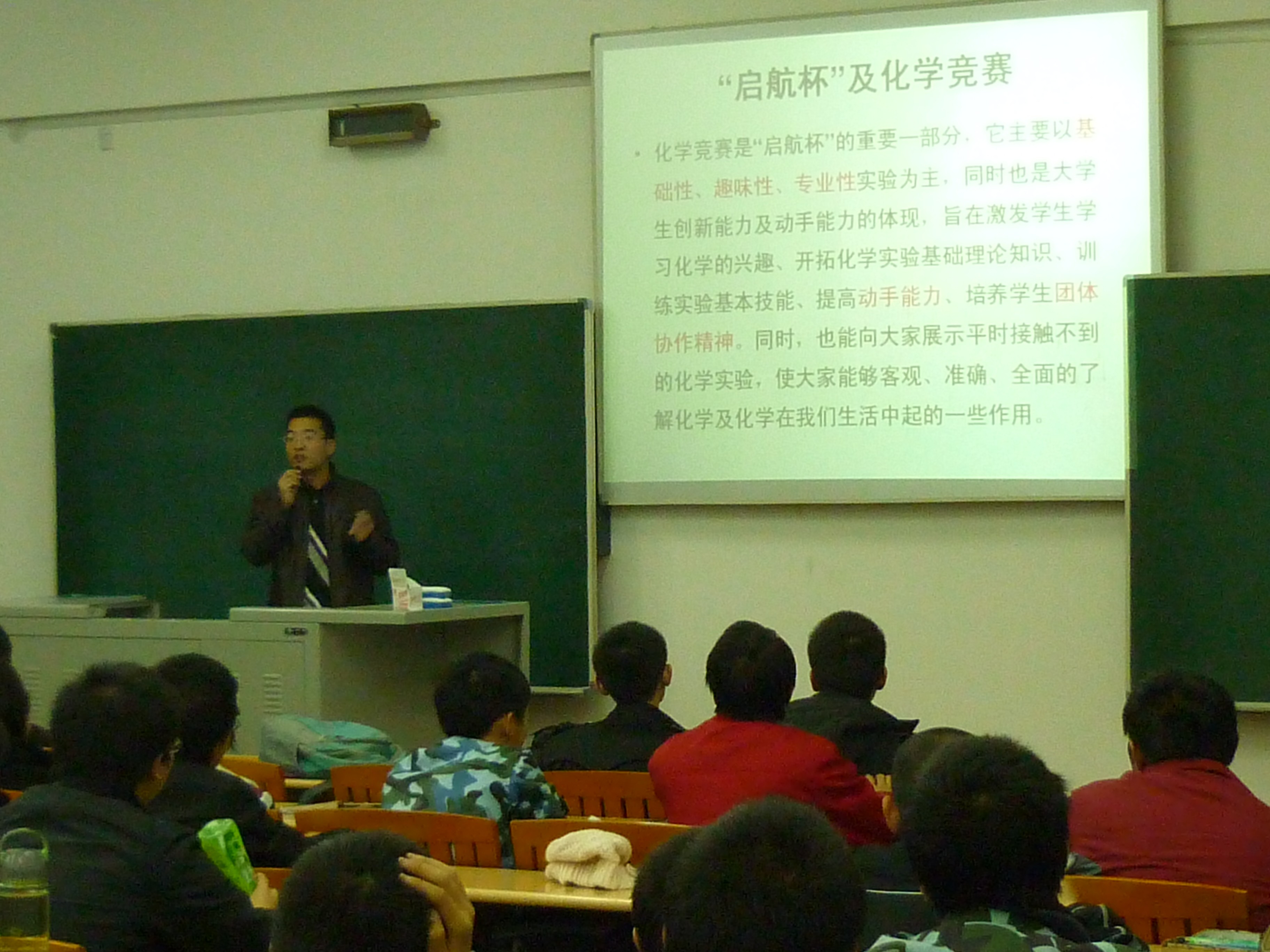 本次宣讲会以“启航杯”大学生科技创新普及竞赛为契机,向与会低年级同学多角度介绍了欧冠中文官网为学生的创新培养所打造的各种成长途径。宋老师详细介绍了欧冠中文官网各创新实验平台以及低年级同学参与科研实验的途径,启发大家以“启航杯”为起点,展望“五四杯”,争取“挑战杯”,极大地激发了同学们的热情和信心。此外,宋老师精讲了“启航杯”的四道化学实验题目,对于诸如分析天平等新同学不太熟悉的实验仪器进行了讲解,明确了化学实验细节是关键。