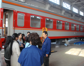 有关负责人盛情接待了我们,并指定高级工程师担任讲解员,把火车的每一个制造工序及各节车厢的相应功能以实例的形式进行层层分解展示,为团日活动的顺利开展提供了莫大的支持与帮助。