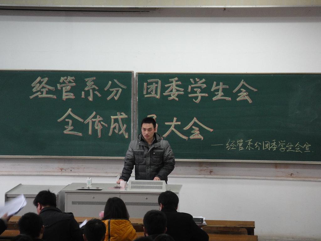 2011年3月7日下午4点30分,第三届经济管理系分团委学生会全体成员大会在成贤院113教室隆重举行。经济管理系分团委书记羊栋老师出席了本次大会。系分团委学生会全体成员参加了本次大会。