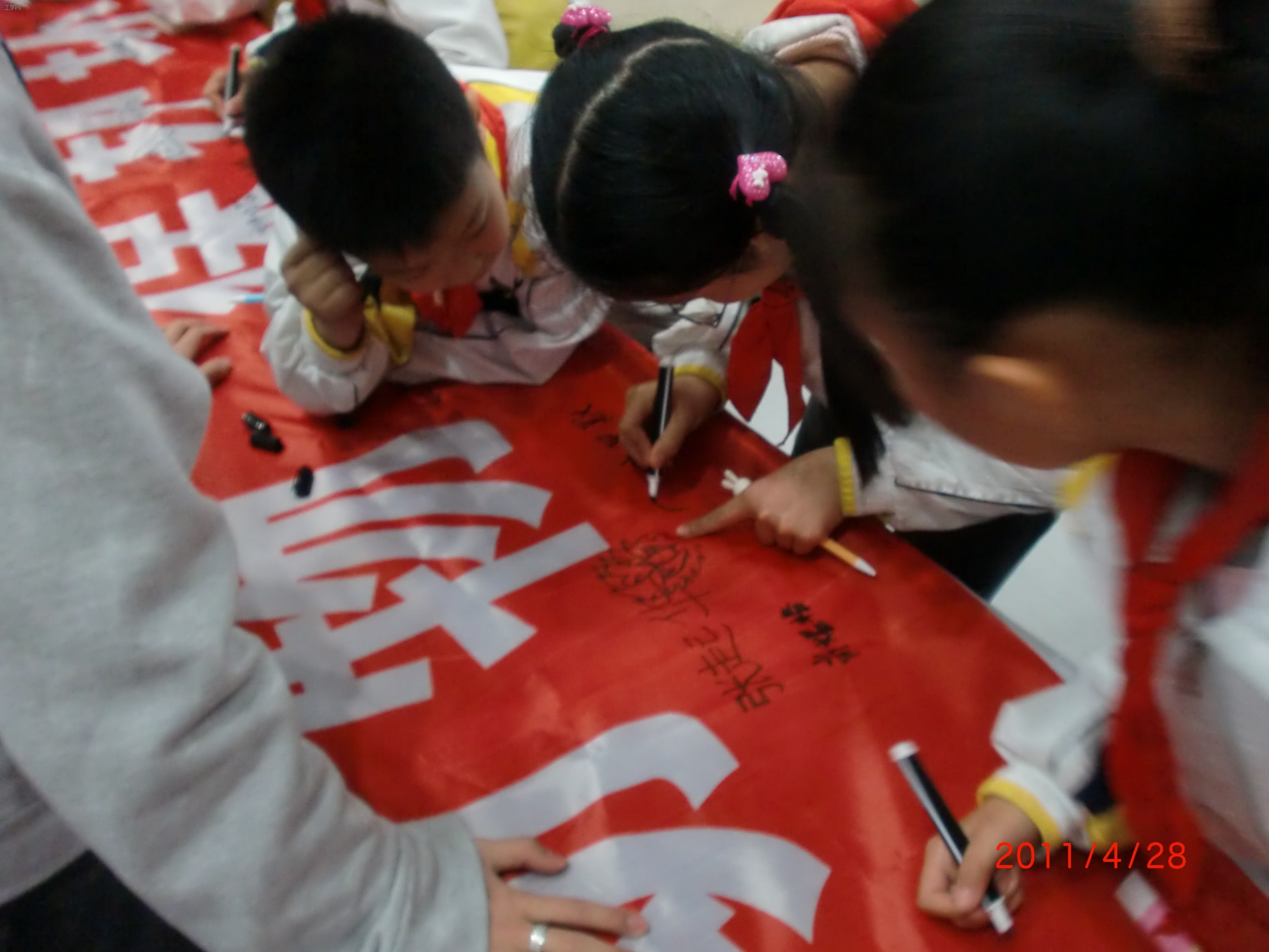 活动最后,志愿者们与小学生签字合影留念。对此次活动,复华小学校方给予高度评价,并支持和鼓励大学生去做类似活动,同时拓宽小学生思维,丰富课余文化。绿色协会也将与小学校达成协议,每学期不定期做适量的环保宣教,传达环保思想,让环保从小做起!