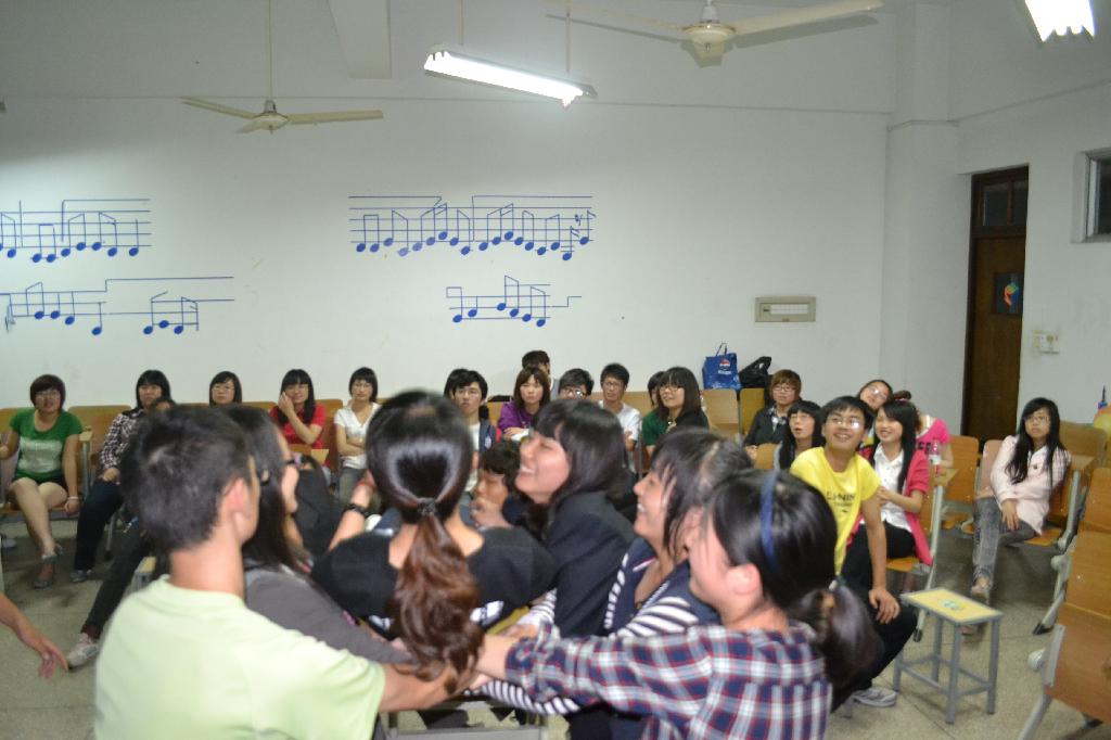 机智抢答:该环节每个组的同学选出代表,围坐一圈进行抢椅子游戏,抢到椅子的人可以代表本小组回答考官所出的问题,回答正确的可以为小组加分,在本环节中领队们都发挥了身体的灵活与头脑的机智。