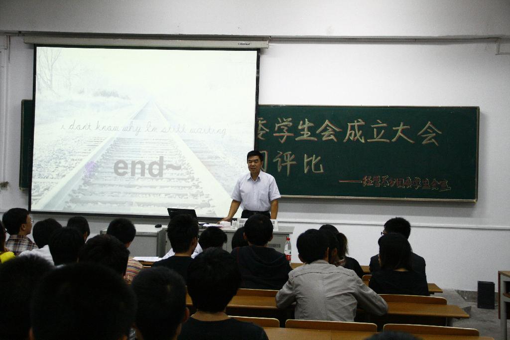 2011年9月22日下午3:30,经管系第四届分团委、学生会成立大会在成贤院113顺利召开。本次大会由经管系分团委组织部承办,第四届分团委副书记张晓晓主持会议。参加本次大会的领导有:经管系党总支书记黄苏宁老师,经管系综合办主任李清源老师,以及经管系分团委书记羊栋老师。