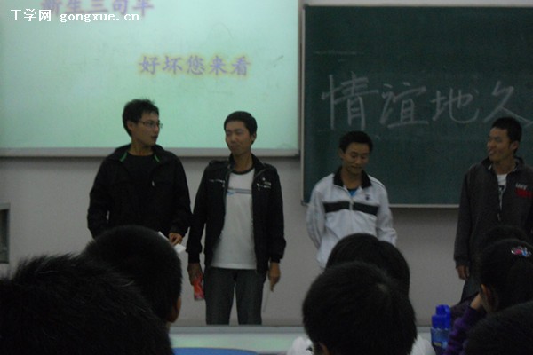 在活动的过程中,首先让大家眼前一亮的是1071班准备的三句半,幽默的话语,真实的反应了大一新生近一个月以来的学习和生活状况,四个人的幽默和诙谐,活跃了交流会的气氛。为使学长学姐们更加深入的了解班里的学习情况,接下来是各寝室的代表进行了总结,使同学们回顾了这一个月的生活,很多同学都深有感触。后来学长,学姐们针对出现的问题,提出了很多建议。例如:如何学好微积分?四级怎么准备?等多方面的问题。在自由交流的环节中,同学们的积极性很高,不断向学长们咨询自己心中的疑惑,并且认真的聆听,做笔记。听完学长学姐的建议后,同学们的感触很深。最后在《奔跑》的歌声中结束了本次团活。