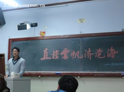 首先由主持人赵秋影同学,以展望明朝为开篇,描绘了明天的美好,并且为同学们介绍了到场的嘉宾,出席本次班会的嘉宾有科技处副处长陈野教授,2011级辅导员黄金老师以及20111031班班主