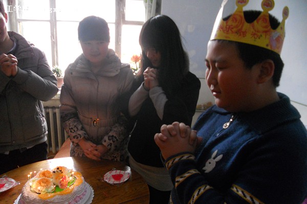 看到我们带来的科幻书籍,还有我们亲笔所写的充满浓意的贺卡,长期缺少关心的小思雨不禁脸上淌下泪来,我们看到也感到辛酸。忙插上蜡烛,叫小思雨许上愿,切蛋糕,懂事的小思雨把最看重的第一块给了他奶奶。