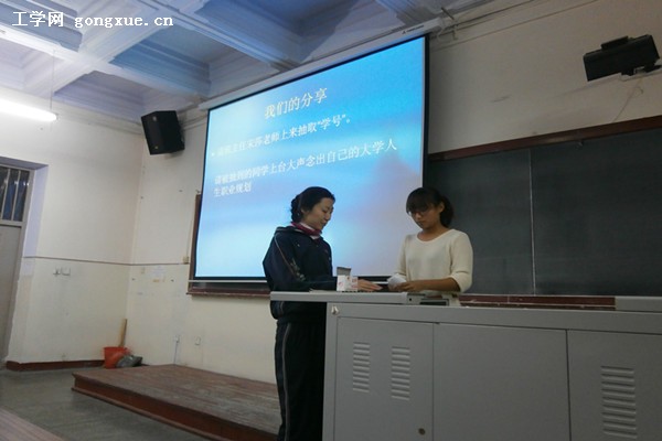 接着,开始对大学职业人生做出相应的规划,班主任宋莎随机抽取学号,同学上讲台演讲自己的规划,整个场面热闹而精彩。随后而来的学长介绍学习方法使我们收益匪浅。