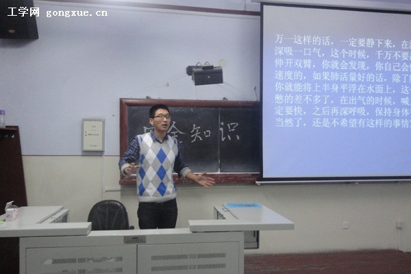 本次活动由周上群同学主持,首先他向同学们介绍了开展本次活动的目的意义,接下来,他引用近几年来意外突发事故死亡人数统计来向同学们说明本次活动开展的背景,近几年来,因不懂得正确保护自己人身安全及遇到突发状况采取正确的自我救助措施而死亡的人数逐年增长,因而对大家进行正确的引导宣讲势在必行!接着开始的是同学宣讲的环节,本环节由每个寝室派出代表就生活中可能遇到的突发紧急事件的正确处理办法进行宣讲,同学们配合自己所做的幻灯片对地震、火灾、溺水、食物中毒等生活中常见突发紧急事件的防护措施及正确处理办法介绍给大家,并结合自身所经历的事件对大家进行劝导,讲到心肺复苏等难度较高的抢救措施时,同学们还准备了现场真人演示。最后一个环节是有奖知识竞答,在本环节中,由主持人提问事先准备好的有关安全知识的问题,随后由同学们开始抢答,伴随着同学们紧张激烈的竞猜,本次活动也落下了帷幕。