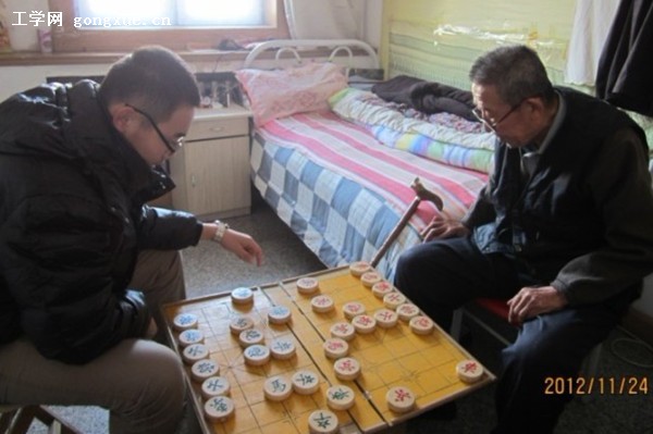 一进门,正赶上老年公寓大扫除,同学们赶忙放下手中的水果,帮助公寓房的工作人员一起搞卫生工作。同学们投身于公益事业的热情高涨,争先恐后的帮助移动床铺,打扫卫生。经过一个小时左右的辛勤工作,老年公寓内被大家打扫的焕然一新。然后同学又陪老人下棋,聊天,为他们唱歌,排解了老年人心中因儿女不常在身边的孤独寂寞,丰富了他们的生活。