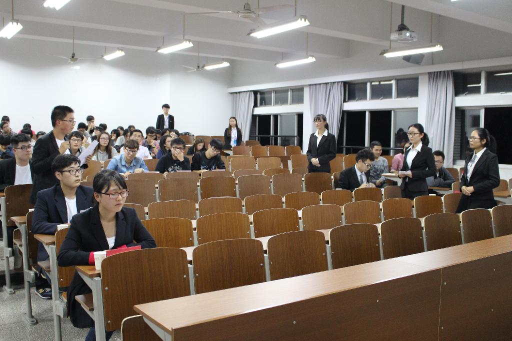 2015年10月25日晚,经济管理系分团委学生会学习实践部举办的第八届经济管理系辩论赛小组赛在文昌院303隆重举行。出席此次辩论赛的嘉宾有:辅导员胡钱胜老师、苏珍晶老师、经济管理系分团委副书记陈杨、秘书长茆大刚、电子工程系现校队主力辩手徐何伟,经济管理系队队长魏文辉、经济管理系现校队主力沈昕。