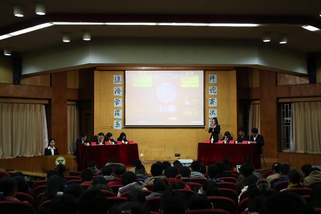 首先由正反方一辩对辩题开篇立论,他们对辩题的深刻理解得到了好评,然后分别由对方四辩进行反问质询,双方辩手自信辩驳,吸引观众眼球。接下来的二辩对论点进行补充说明并提出自己的独特见解,角度犀利。随后三辩的质询盘问及自由辩论引爆了场间气氛,观众们情绪激昂。无疑,辩手们是优秀的,灵活的变通、敏捷的思维让他们获得了一致好评。最终,电商赢得了此次比赛,电商四辩荣获“最佳辩手”称号。