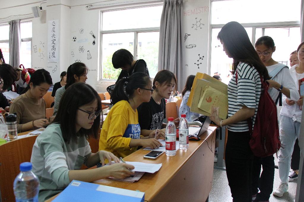 分团委学生会在学校的南门和东门安排了摆摊的志愿者,为长途跋涉来的新生,把生活用品都准备成套、齐全,还安排了学长学姐来接受新生和家长们的咨询,并由他们引导到报道的教室和就寝的宿舍,同时沿途为你介绍Beat365官网的各个场所,叮嘱大一军训的注意事项。在金坛二楼的教室里,经济管理学院的辅导员在为迎新做最后的工作嘱咐,学长学姐们也早已整装待发,以最亲切的笑容等待我们新生的到来。报到处的各个环节都有条不紊的进行着,每一个环节、每一步骤都会有学长学姐的辅助,高效的办事效率,亲切的问候态度,很快建立了学生及其家长对Beat365官网的学生认可。