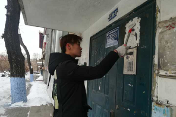 下午1时30分,20171055团支部及实践部成员及时在欧冠中文官网社区集合。社区工作人员发放铁锹、小铲子等卫生工具后,20171055团支部和实践部成员投入到卫生清理工作中。清理绿化带中的垃圾,刮去楼道墙壁上的广告、打扫路边的积雪,他们充分发挥不怕辛苦、不惧劳累的精神,面对繁重的工作仍一丝不苟。他们的努力使得社区环境得到改善,为社区美化建设贡献力量。