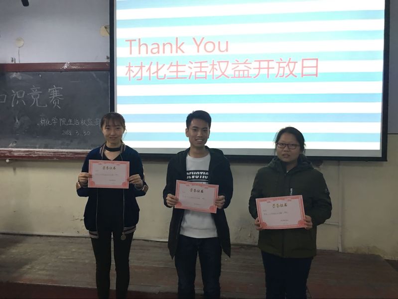 第二部分抢答题中,办公室成员反应速度超群,多次抢答,成为另一大亮点。赛后,生活权益部对获胜成员颁发了奖状,生活权益部获得一等奖,文艺部获得二等奖,学务部获得三等奖。