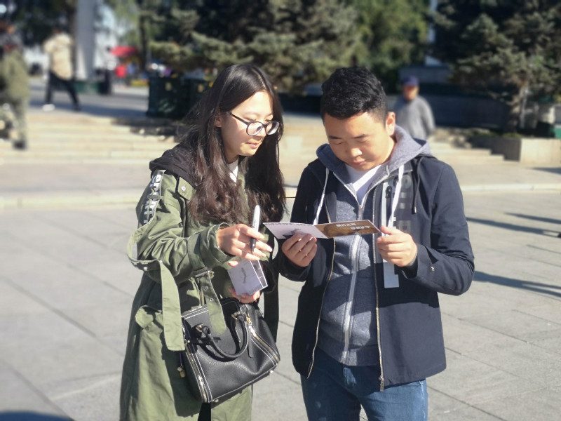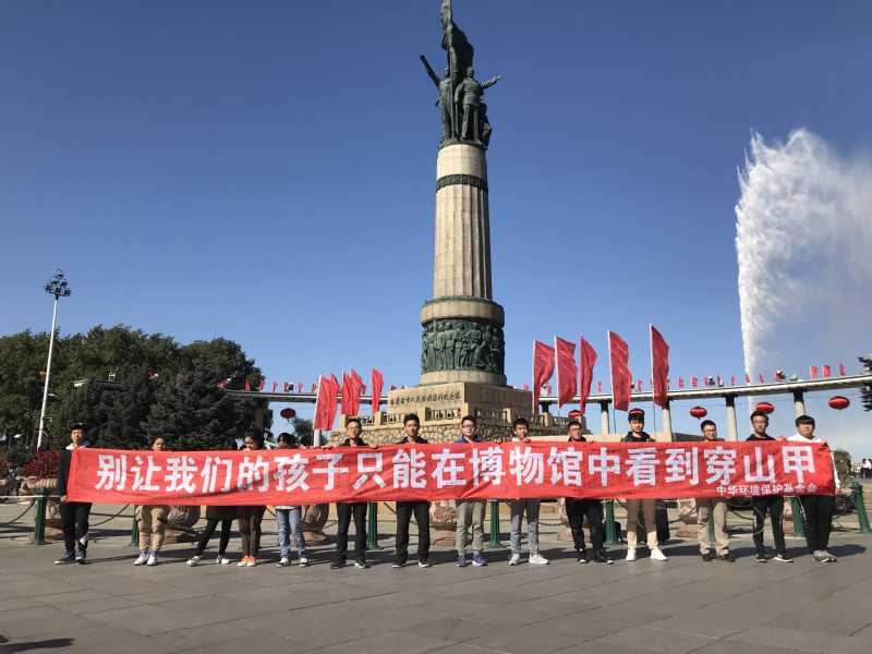 清晨,达到目的地之后,队长陈嘉庆与安保人员进行协商,之后进行简单部署,金手指各成员各司其职开始行动,向来往的游客行人讲解穿山甲的现状和本次活动主题意义,各游客行人反响强烈并在写有“别让我们的孩子只能在博物馆中看到穿山甲”的横幅上签下自己的名字表示对此活动的支持。在活动最后,十米长的条幅签满了行人的签名,本次活动圆满结束。