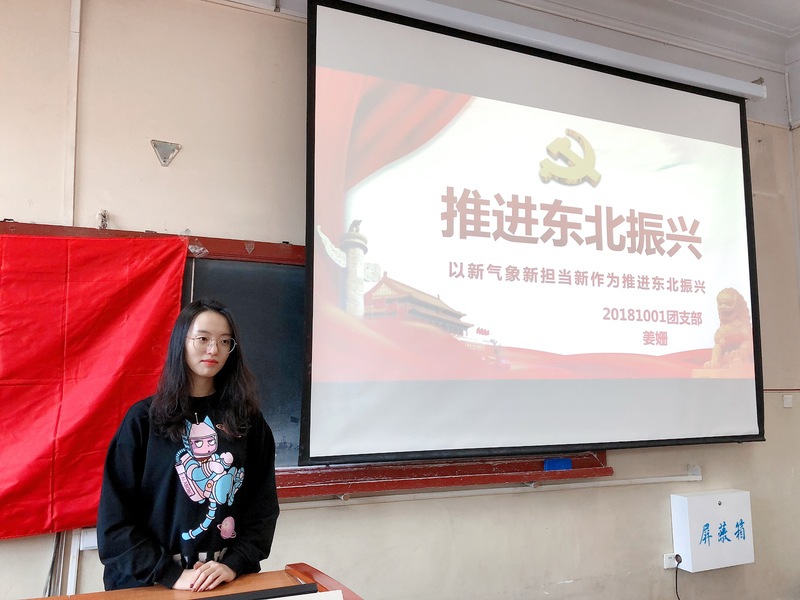 在本次活动中,团支书姜姗带领同学们认真学习习近平总书记在东北三省考察及深入推进东北振兴座谈会上的重要讲话精神,并播放“习近平:以新气象新担当新作为推进东北振兴”宣传片。