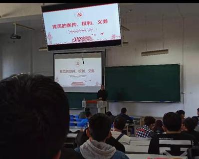赵永峰老师讲解内容为“党员的条件、权力及义务”。详细讲述了党员如何起到先锋模范带头作用,只有认清自己身上的权力和义务,才能真正做到为人民服务。