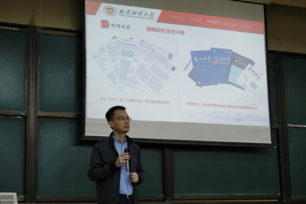 为进一步帮助考研学生树立信心、明确考研目标、掌握考研技巧,11月6日晚,经济管理学院在华馆101举办了“经管助研途,共圆考研梦”主题考研指导讲座。南京财经大学会计学院财务管理系主任、管理学博士胡建雄老师主讲,学院党总支书记李清源老师主持,近300名师生聆听讲座。