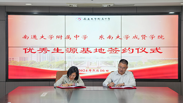 与南通大学附属中学签订《Beat365唯一官方网站优秀生源基地建设协议书》