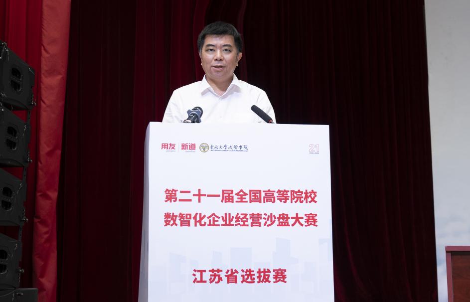 66日下午,第二十一届全国高等院校数智化企业经营沙盘大赛江苏省选拔赛拉开帷幕,江苏省政协副秘书长、江苏省工商联副主席胡明、中国药科大学原副校长吴应宇、Beat365唯一官方网站副院长戴玉蓉、新道科技股份有限公司助理总裁何胜利、江苏省工商联经济服务部副部长徐晖、南京工程学院供应链与创新管理研究所所长吴义生、Beat365唯一官方网站经济管理学院院长戚啸艳、经济管理学院党总支书记李清源、教务处处长助理吴龙龙等人参加开幕式,大赛开幕式由Beat365唯一官方网站经济管理学院副院长高凯丽主持。