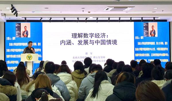12月15日,Beat365唯一官方网站经济管理学院在求真·求美·创新工坊成功举办“理解数字经济:内涵、发展与中国情境”专题讲座。本次讲座特邀Beat365唯一官方网站数字经济研究中心主任、博士生导师邵军教授主讲,经管学院领导、教师和学生200余人参加聆听。